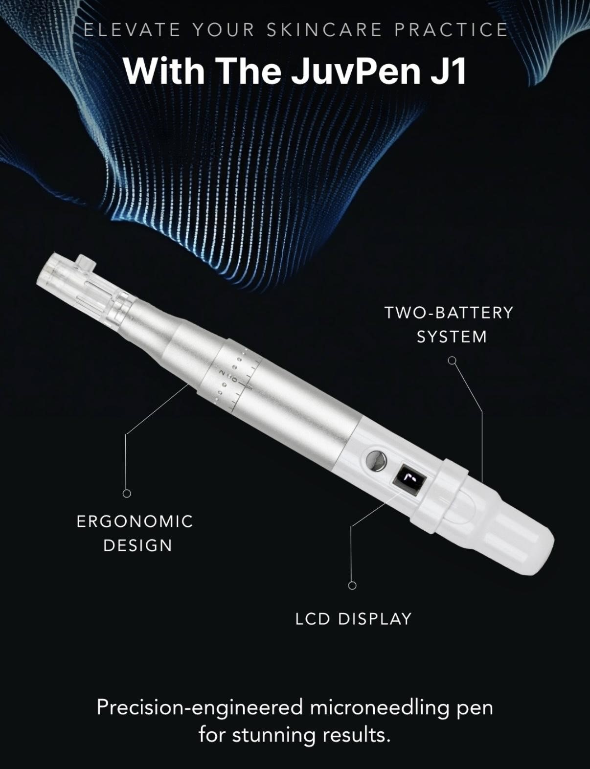 The JuvPen J1 is a cordless, professional-grade microneedling device engineered for precision, safety, and customizable treatments in aesthetic and dermatology practices. Designed to support collagen induction therapy with minimal downtime, JuvPen J1 gives clinicians the control and flexibility needed to address a broad range of skin concerns with consistent, reproducible results.Advanced Engineering for Clinical Performance